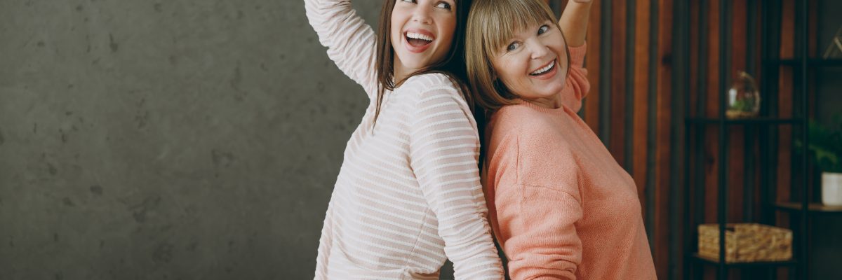 Kaksi eri-ikäistä naista tanssii selät vastakkain.